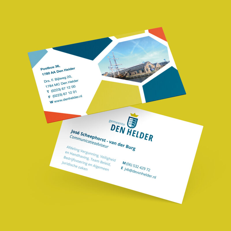 Het logo voor de gemeente is een gestileerde versie van het wapen van Den Helder. De kroon bovenop komt daar ook vandaan maar het linkt ook aan de omtrek van Fort Erfprins en een (erg) gestileerd bootje.