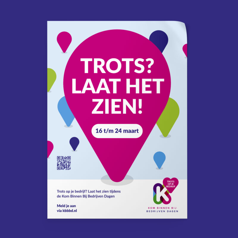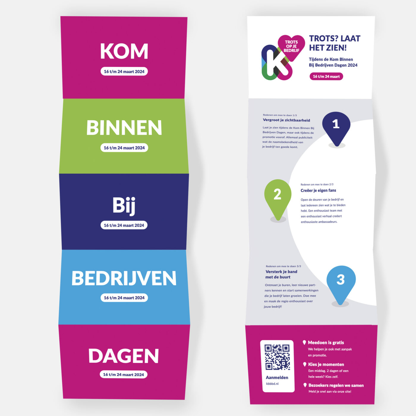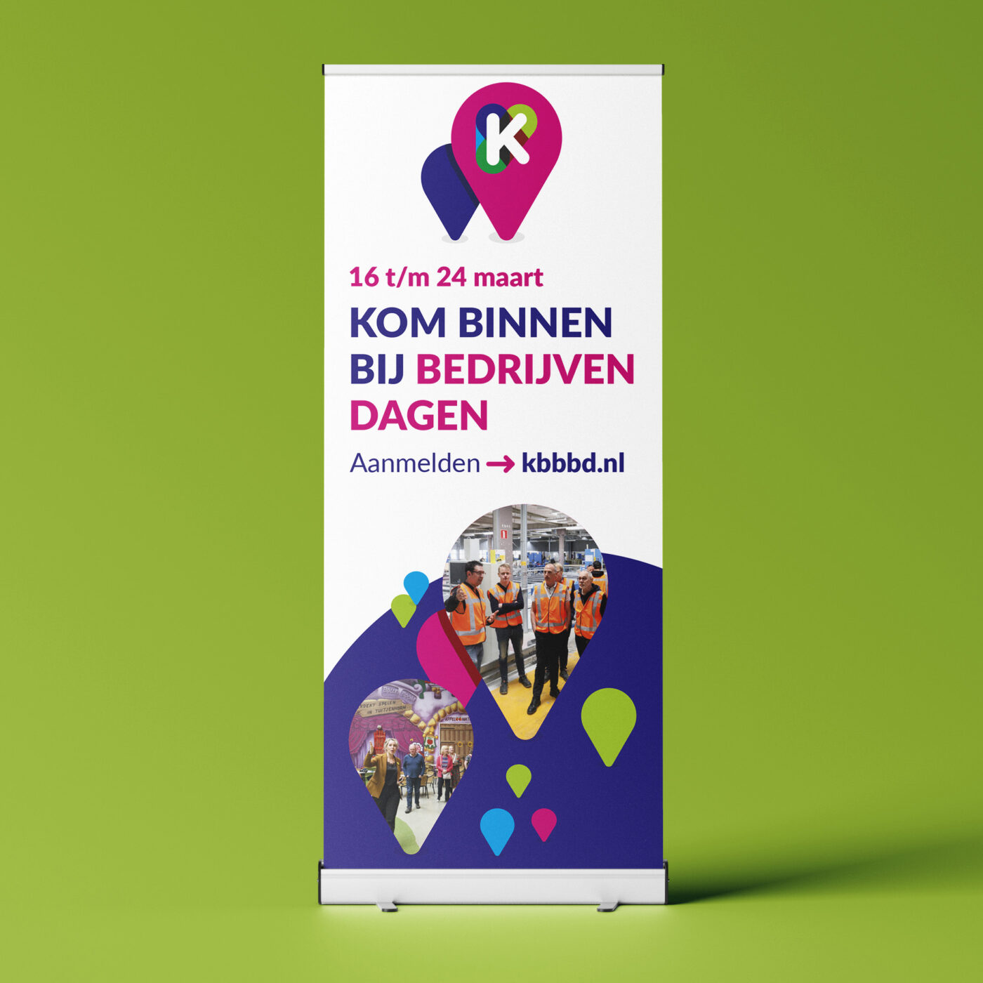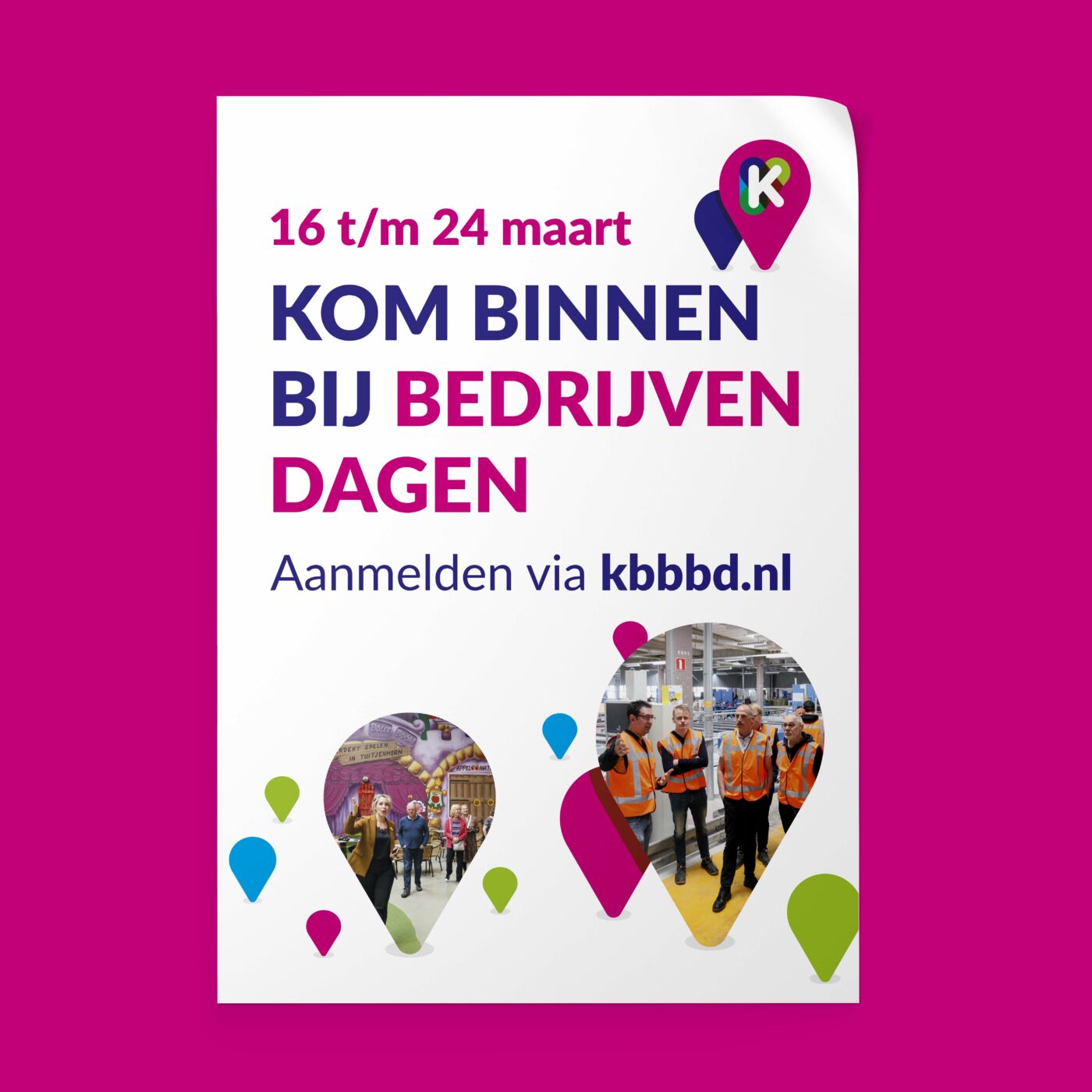 In 2023 namen we voor de eerste keer de Kom Binnen Bij Bedrijven Dagen (KBBBD) onder handen. Het logo bestond al, wij gaven het verder vorm in een bezoekerscampagne.