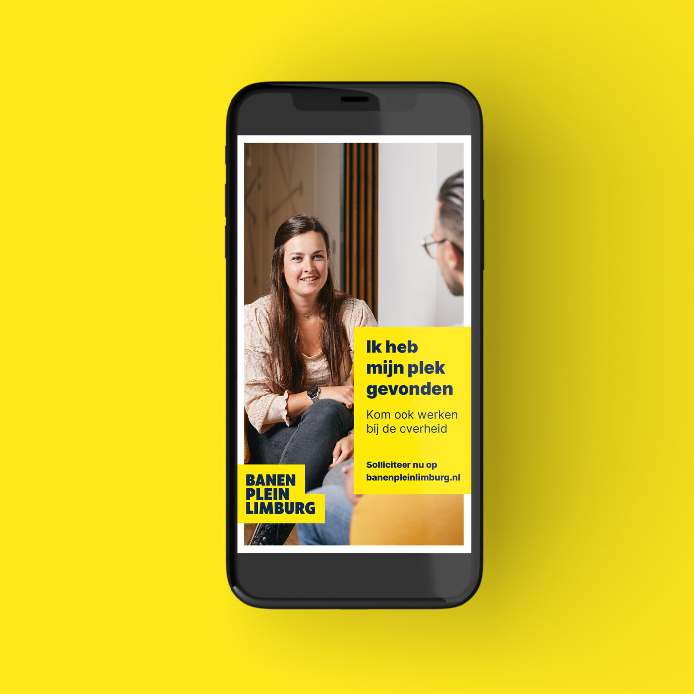 Belangrijk onderdeel is het digitale platform: banenpleinlimburg.nl. Wij hebben de visuele identiteit vormgegeven. Daarnaast gaven we verhaal en vorm aan concepten voor het webdesign en de campagne.
