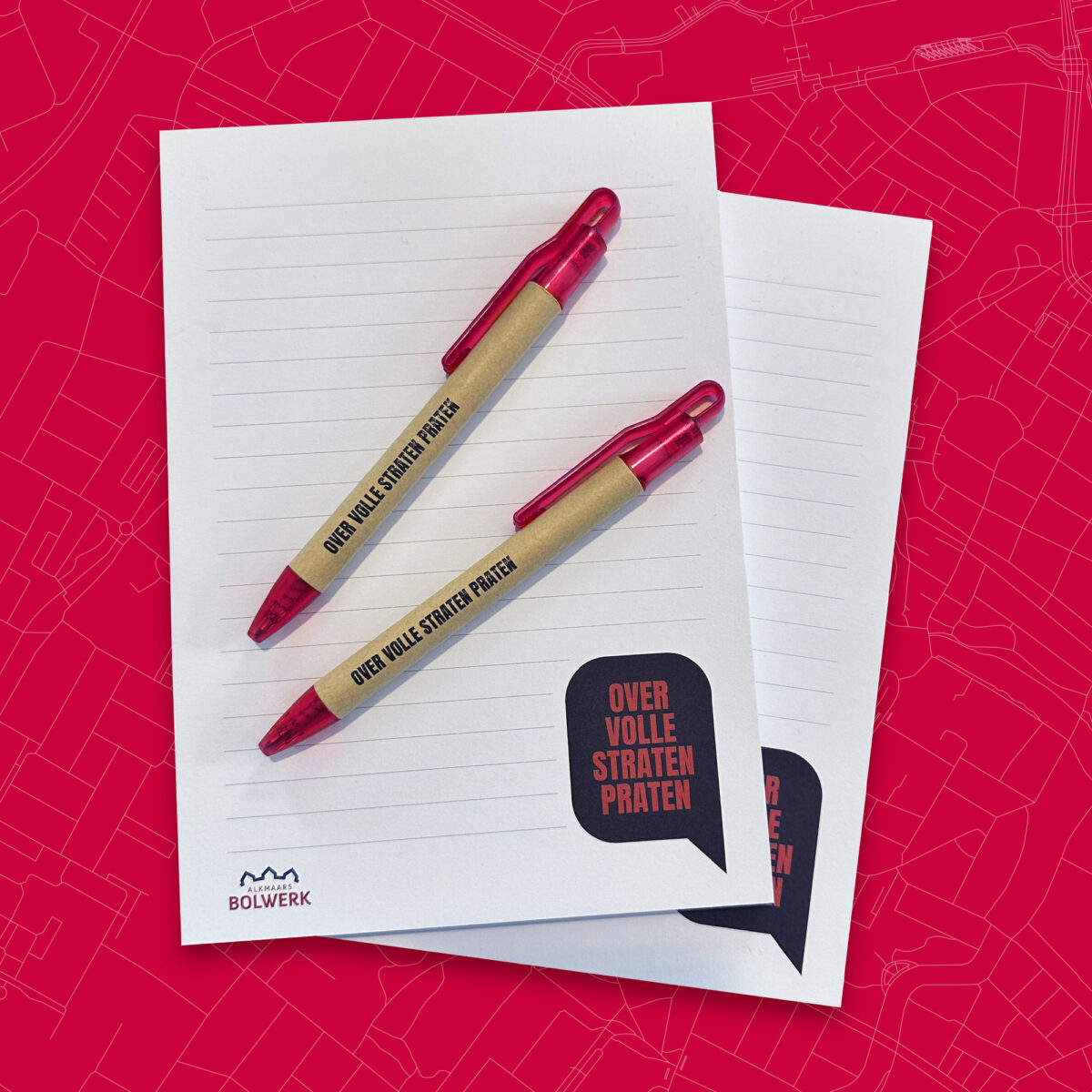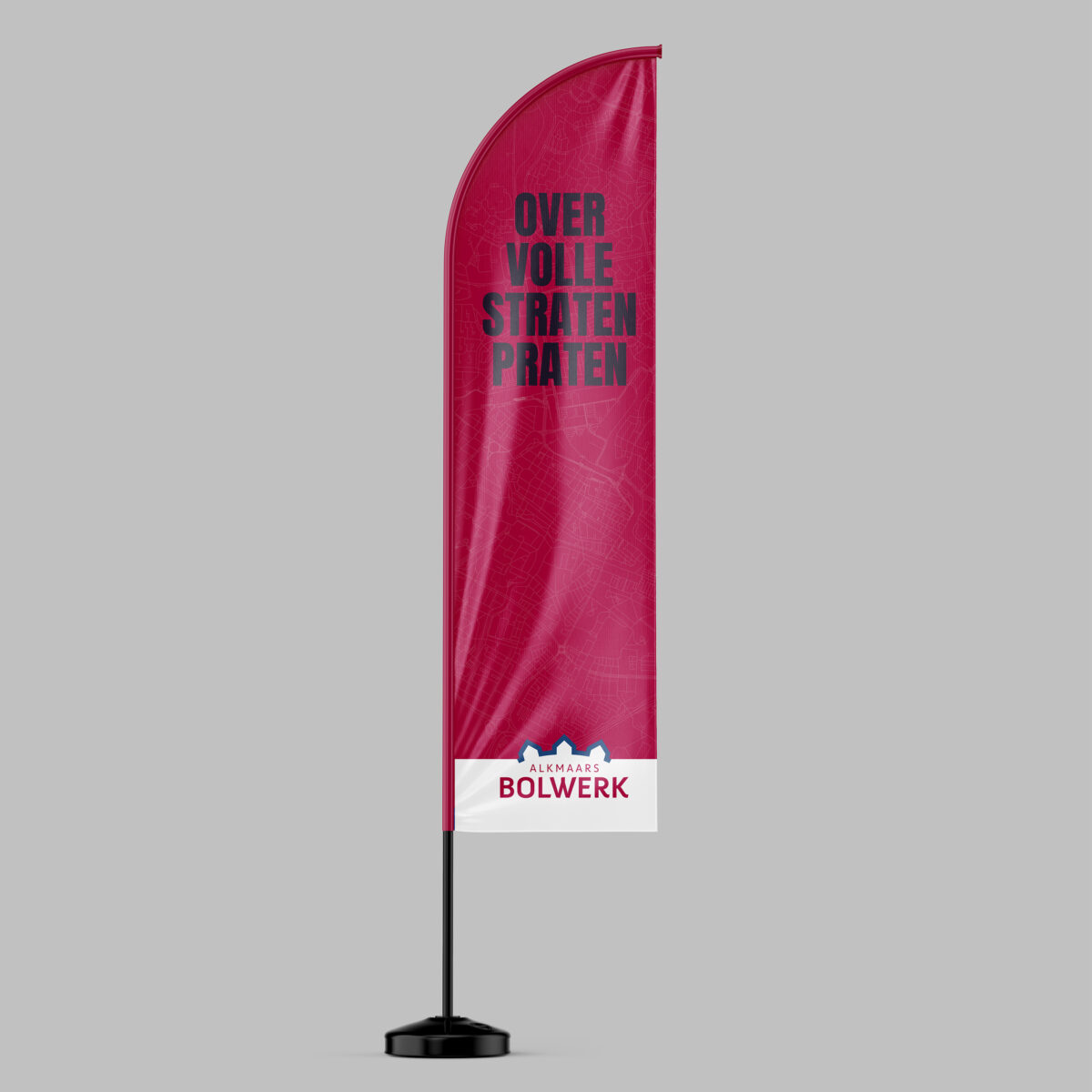 We hebben de campagne opgeleverd in een A2 naar A4 gevouwen uitnodiging (kruisslag), beachflags, notitieblokjes, pennen, reboards en afbeeldingen voor Chainels (het communicatieplatform van Bolwerk).
