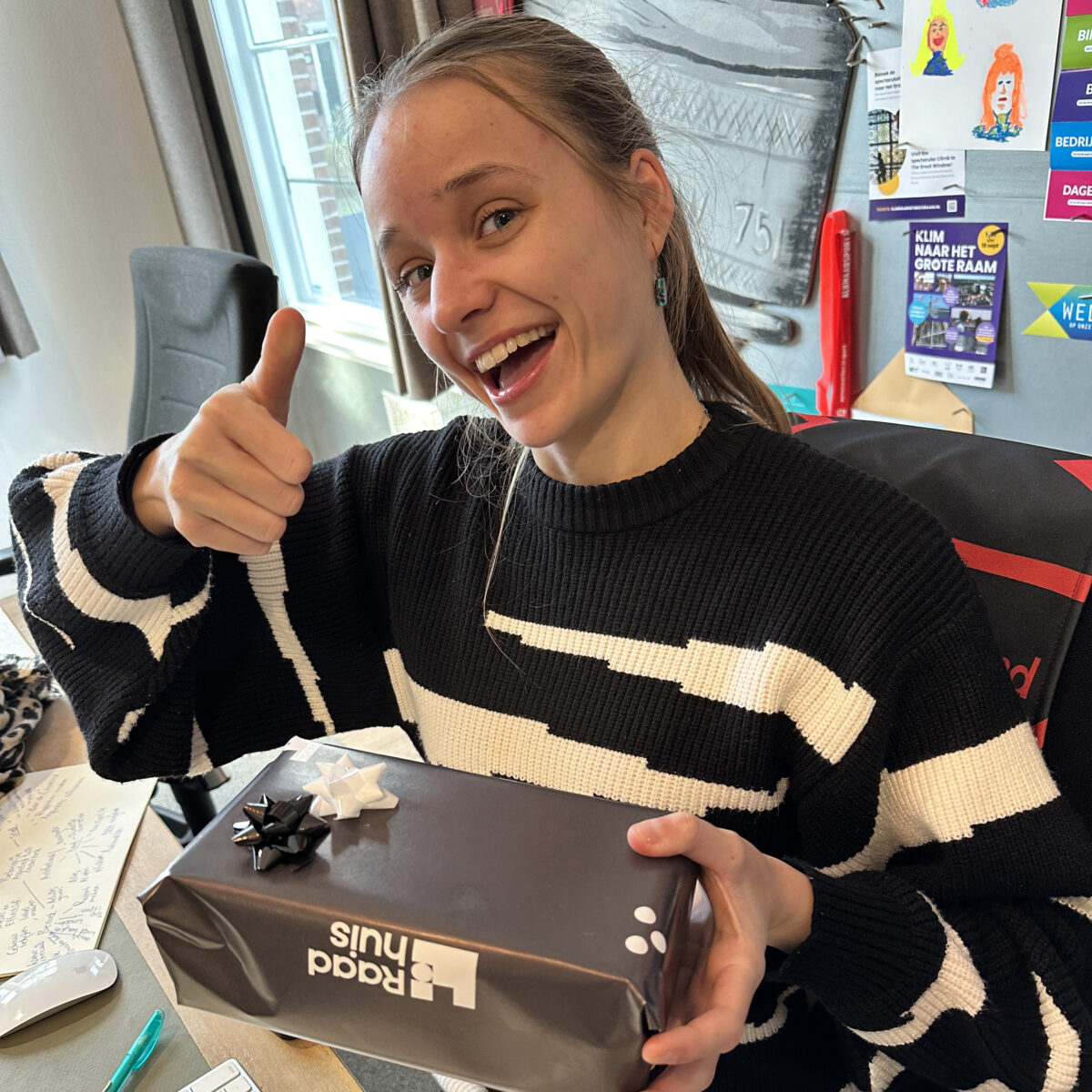 Hey leuk! Je hebt een cadeautje van Raadhuis gekregen. Bofkont. We zouden het heel leuk vinden om er een foto van te krijgen, dan kunnen we deze saaie pagina een beetje opleuken.