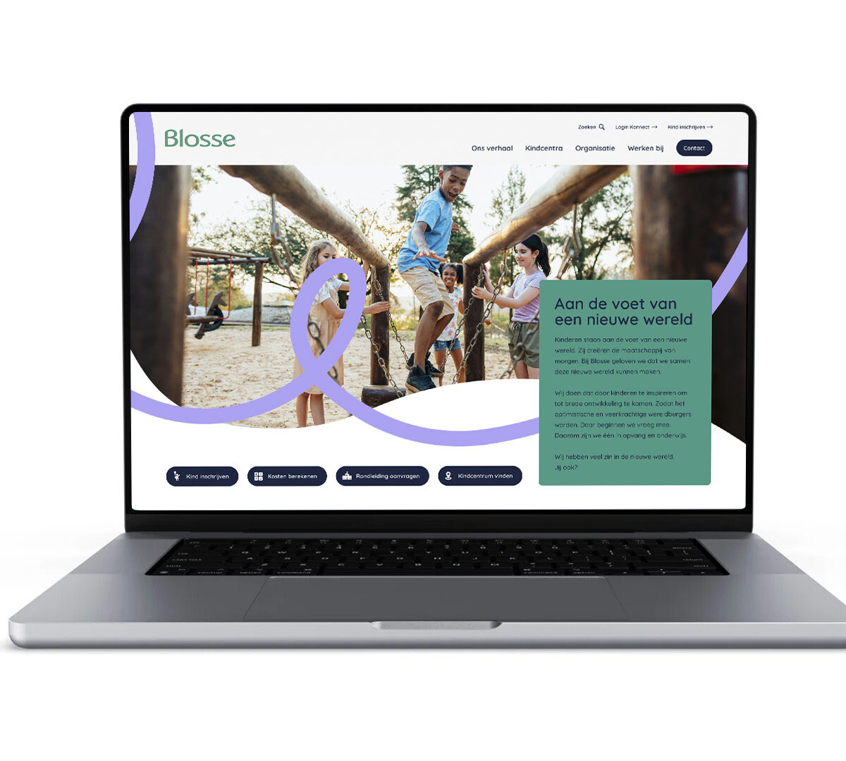 BlosseHet begon met een geeltjessessie waarin we samen hebben gezocht naar de juiste invalshoek: wat is nou dat unieke verhaal van Blosse? Het was geen kwestie van bedenken, maar kiezen. Samen kozen we voor ‘Aan de voet van een nieuwe wereld’. Dit verhaal werkt voor alle doelgroepen.