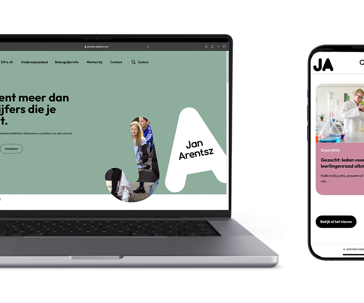 In 2024 is er hard gewerkt aan de branding van het Jan Arentsz, ofwel JA. Wat begon met een workshop merkstrategie, resulteerde uiteindelijk in een nieuwe visuele identiteit. Dit hebben we uitgewerkt in alle uitingen, online en offline.